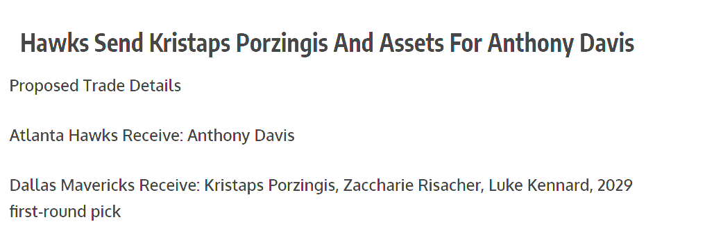 特雷·杨的离队让老鹰队彻底摆脱了围绕高使用率后卫建队的思路,而引进安东尼·戴维斯则将成为球队转型的关键一步。潜在交易方案中,老鹰将送出里萨谢、亚历山大-沃克、奥孔武、肯纳德以及2029年和2031年首轮选秀权,从独行侠得到安东尼·戴维斯。作为常年入选全NBA最佳防守阵容的球员,浓眉哥本赛季场均贡献20.3分、11.1个篮板和1.7次盖帽,他的到来将彻底解决老鹰队长期存在的护框不足问题。在特雷·杨时期,老鹰队因内线防守薄弱而频繁在篮下失分,浓眉加盟后将为球队建立起坚实的内线屏障,同时提升球队的季后赛竞争力。在当今联盟,优质内线依旧是争冠的重要拼图,老鹰的阵容架构也将更加合理,从依赖外线得分转向内外均衡发展。
