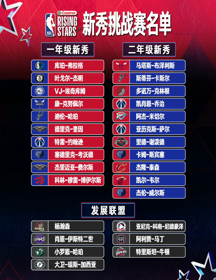 正因为如此,此前开拓者队的跟队记者Casey Holdahl就已经透露,杨瀚森有可能以NBA发展联盟球员的身份出现在NBA全明星周末的新秀挑战赛上。按照规则,NBA全明星新秀挑战赛有4支球队参加,分别是三支NBA新秀球队和一支NBA发展联盟球队。